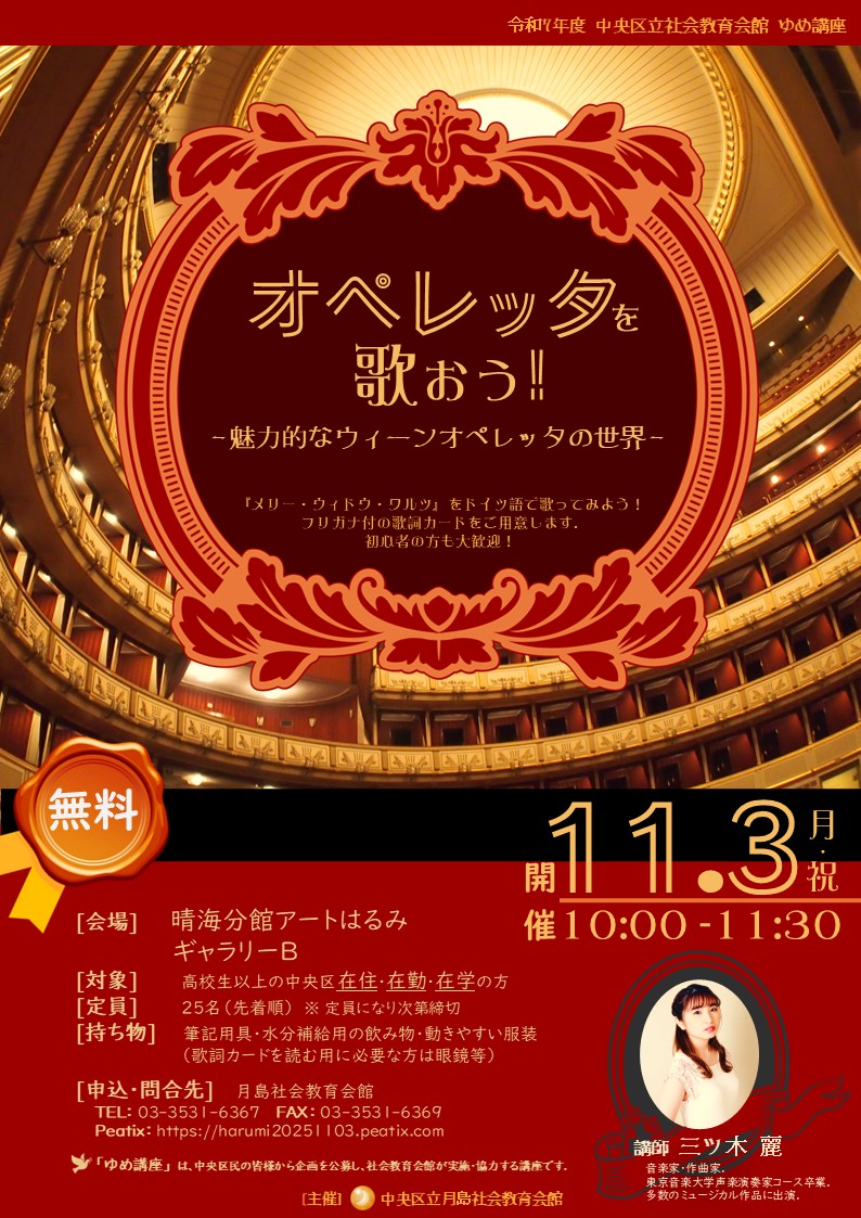 ※「ゆめ講座」は、中央区民の皆様から企画を公募し、社会教育会館が実施・協力する講座です。