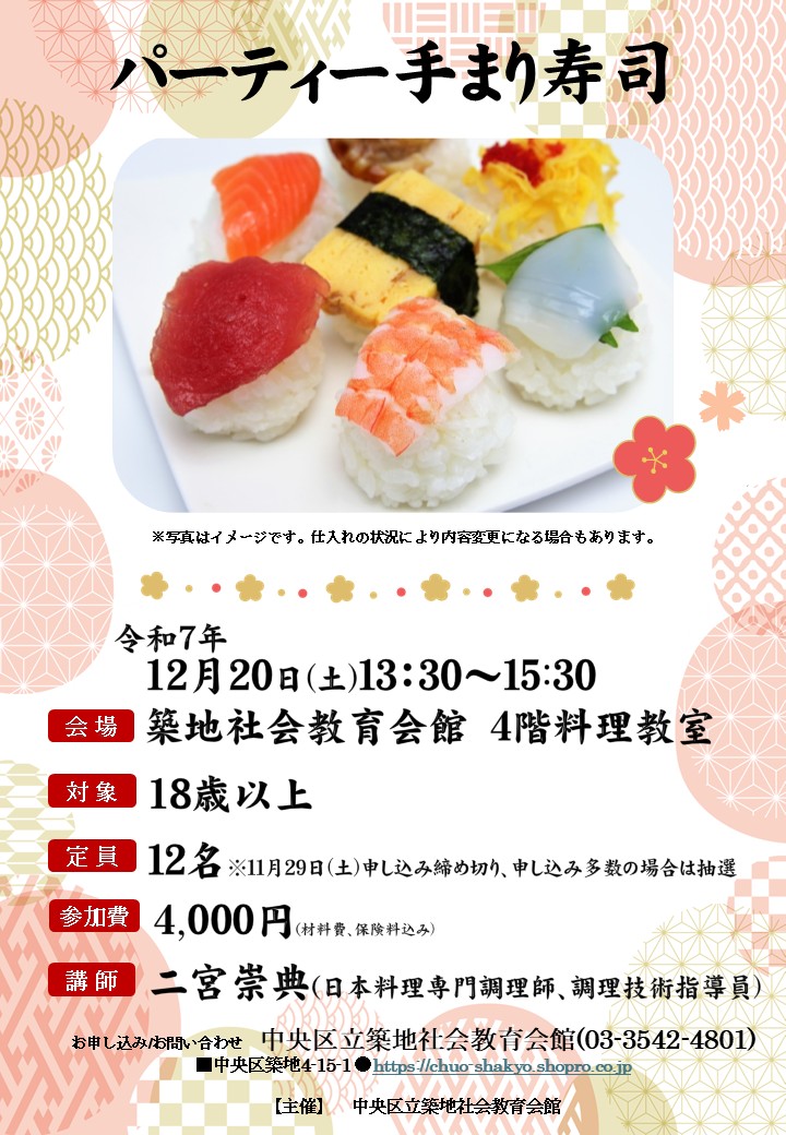 ※本講座では原材料に、えび・かに・小麦・卵・いか・いくら・ごま・さけ・さば・大豆を使用します。