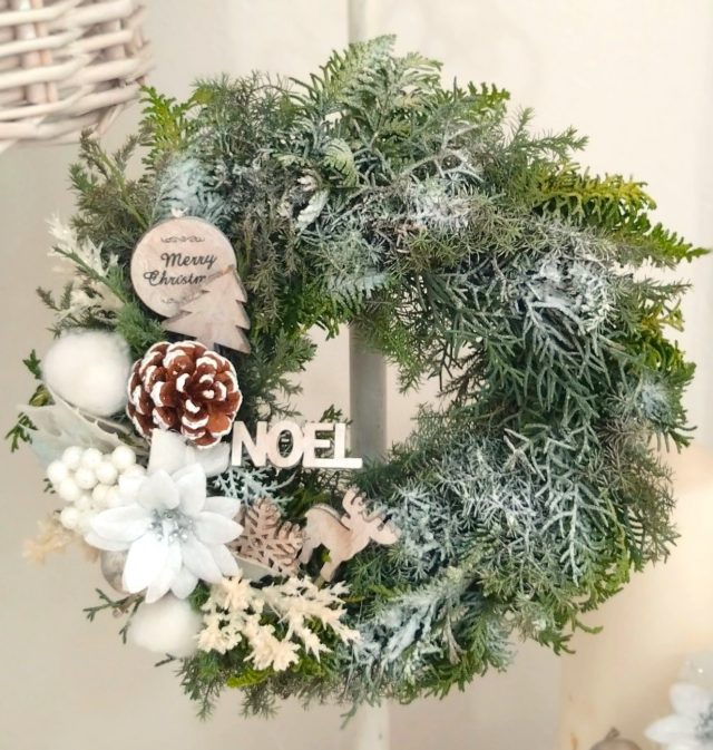 生ヒバを使った手作りリースでメリークリスマス! スノーなクリスマスリース  制作講座