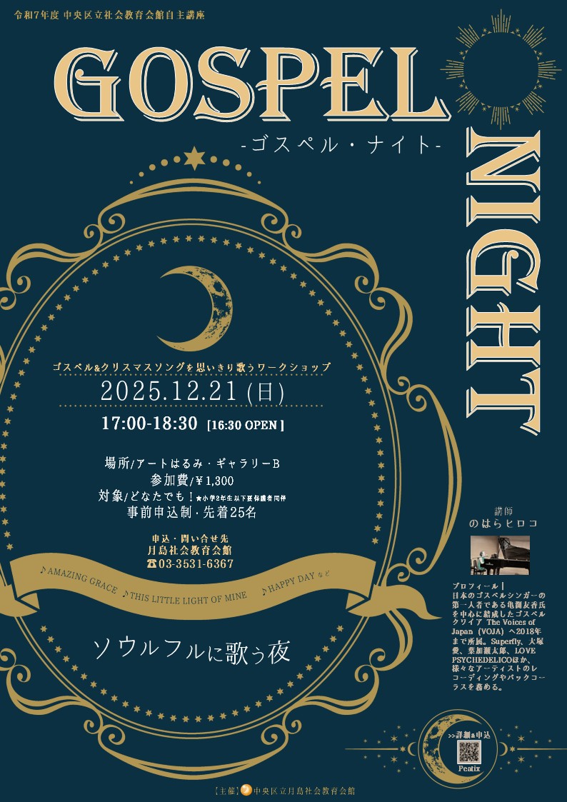 ※ 11/3 (月) 月島社会教育会館は休館日となっております。アートはるみ もしくは Peatixよりお申込みください。11/4 (火)~ 月島社会教育会館でも受付可能です。