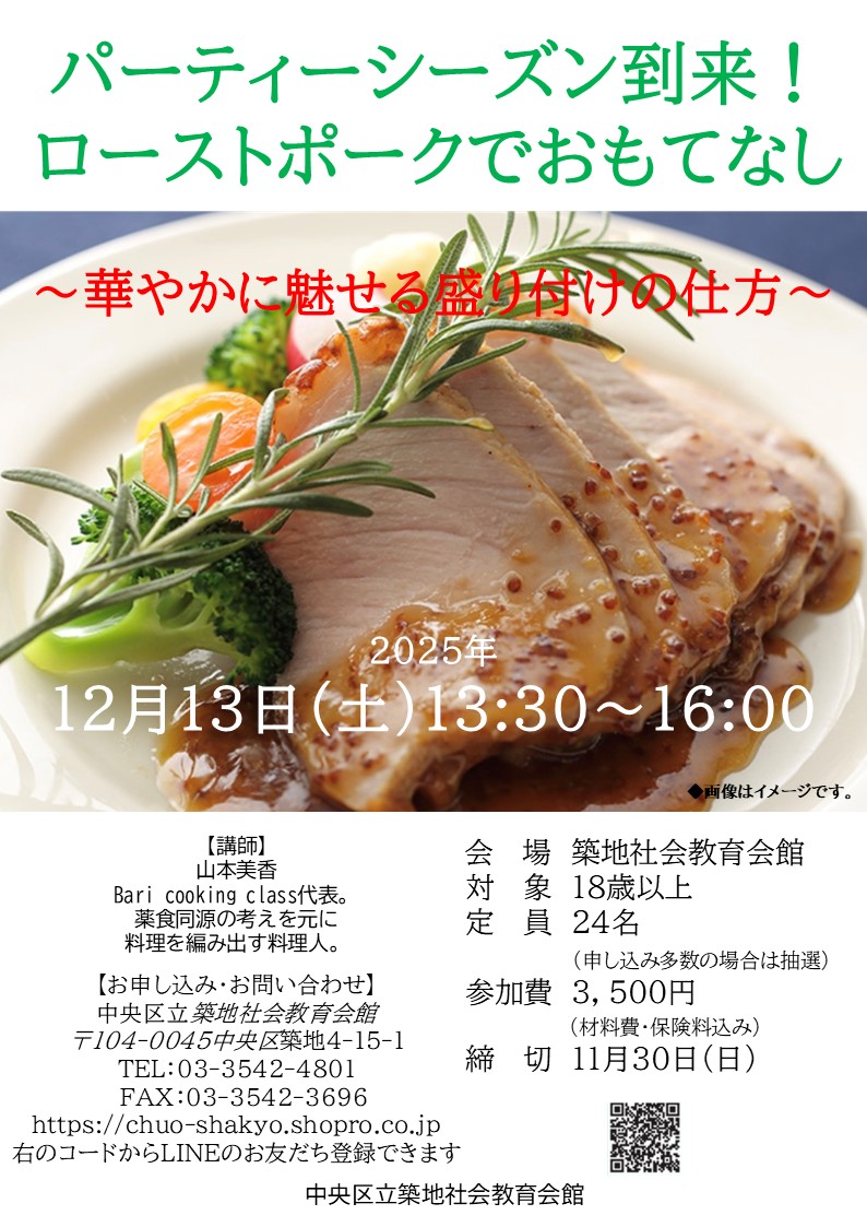 ◆お申し込み方法◆ 築地社会教育会館窓口、またはお電話(03-3542-4801)、FAX(03-3542-3696)にてお申込ください。 ※日本橋・月島・アートはるみの各社会教育会館窓口でもお申し込みいただけます。 【主催】 中央区立築地社会教育会館
