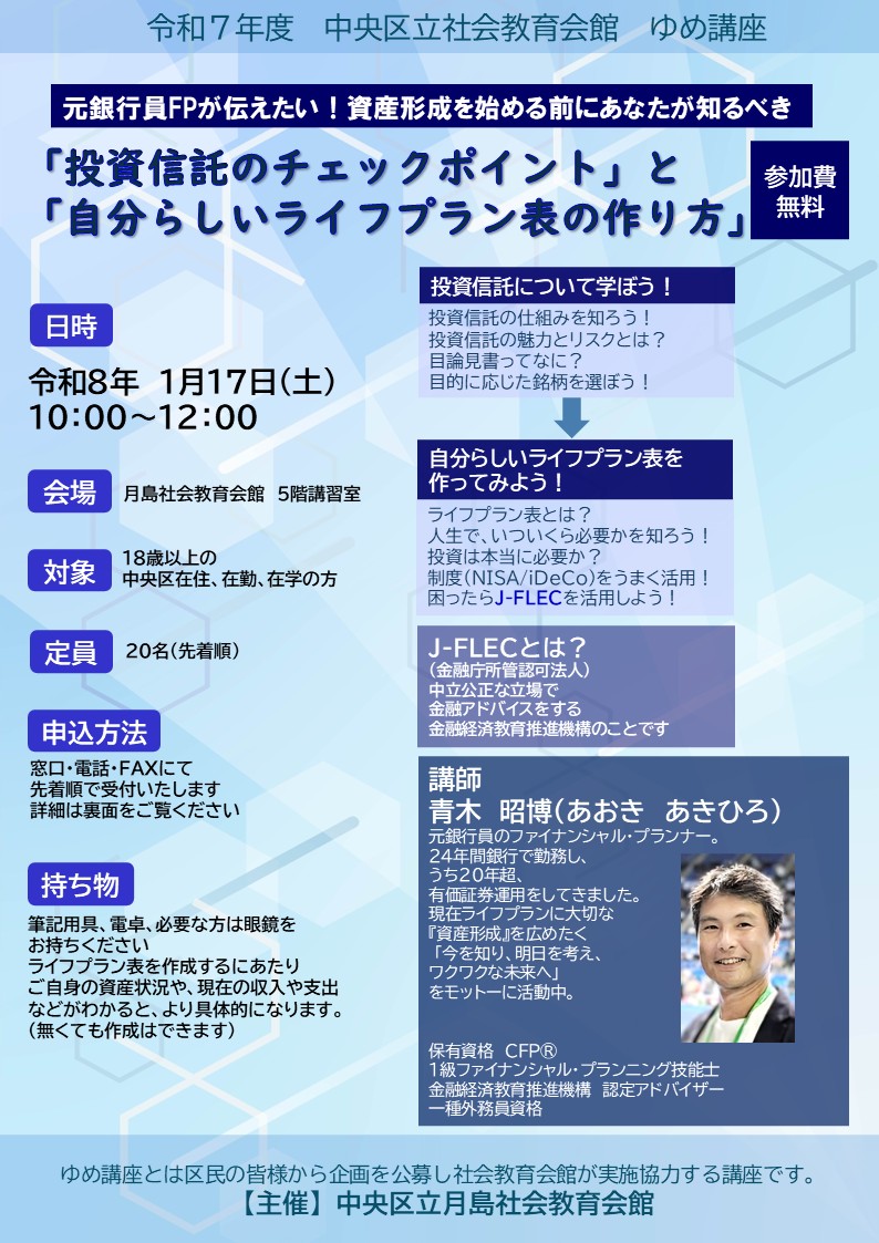 【お問合せ】月島社会教育会館(Tel:03-3531-6367)