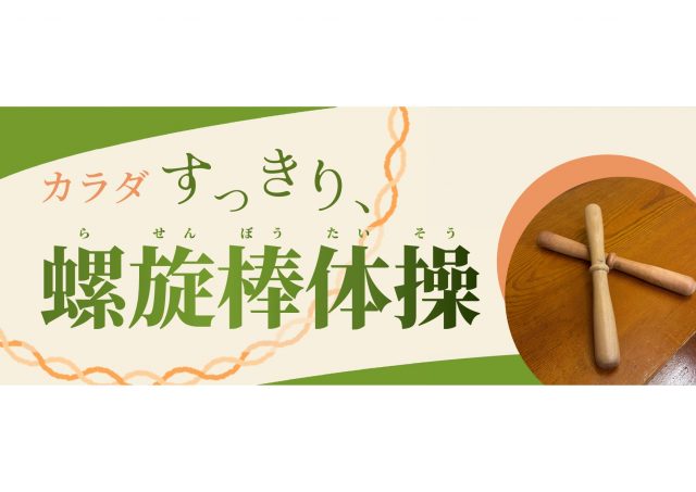 棒を持つことで、ねじりの入ったストレッチの型が決まりやすく、深い呼吸、ゆっくりとした下半身の体重移動などを意識させることで適度な負荷の運動を行います。